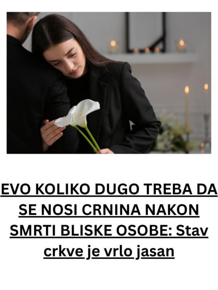 Nošenje crne odjeće nakon smrti voljene osobe predstavlja duboko ukorijenjen običaj u mnogim kulturama, a posebno u hrišćanskoj tradiciji. Ovaj običaj nije samo vanjski znak žalosti, već i simbol poštovanja i sjećanja na preminulu osobu. Tradicija nošenja crnine seže unatrag kroz istoriju i često odražava duboko emocionalno stanje gubitka koje pojedinci prolaze u trenucima tuge.