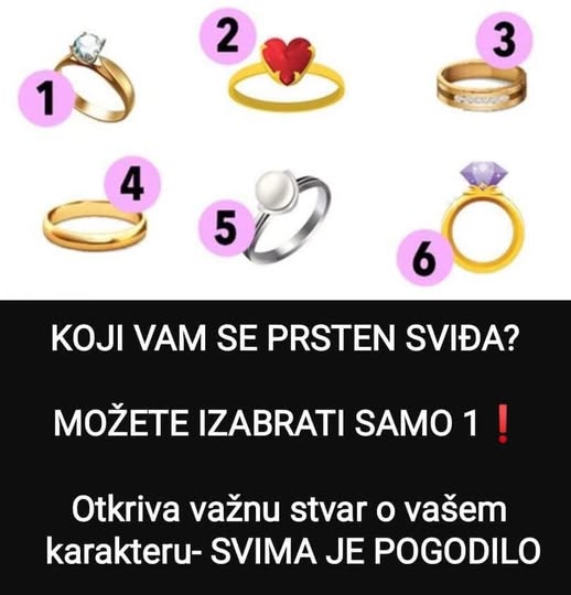 U posljednjim godinama, sve više ljudi odlučuje se za unikatne prstenove koji reflektuju njihov stil i ličnost. Ovi prstenovi često dolaze u raznim oblicima, bojama i sa različitim kamenčićima, svaka od njih noseći svoj poseban značaj. Ovaj psihološki test poziva te da zamisliš različite prstenove i izabereš onaj koji te najviše privlači. Važno je da odabereš instinktivno, bez previše razmišljanja – samo taj prsten koji ti se čini kao da ti pripada.