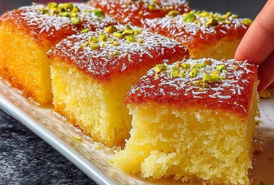 Prebacite testo u pripremljeni pleh i pazite da površina bude ravna. Pecite tortu 35 do 40 minuta, ili dok čačkalica umetnuta u sredinu ne izađe čista. Kada je torta gotova, izvadite je iz rerne i dok je još topla, poprskajte površinu medom, a zatim pospite kokosovim brašnom i seckanim pistaćima. Ovaj korak ne samo da dodaje ukus, već i estetski dojam, čineći vašu tortu još privlačnijom.
