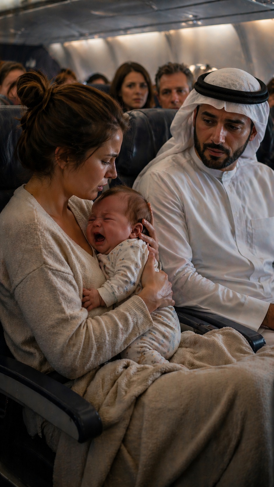 Iznenađujuće, plač malog djeteta je počeo slabiti. Njegovo disanje se smirilo, a ruke su se opustile. U kabini aviona zavladala je tišina, ona koja dolazi iz srca, ispunjena razumijevanjem. Majka je posmatrala, zbunjena i ispunjena olakšanjem. “Kako ste to uradili?” — prošaptala je, dok se šejh samo blago nasmiješio i rekao: “Moja majka nam je ovu pjesmu pjevala kada smo bili mali. Uvijek nas je smirivala.”