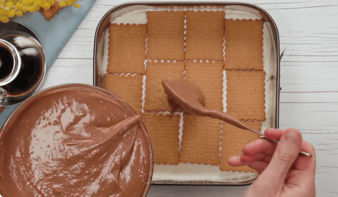 Prvo, pripremite keks tako što ćete ga kratko umočiti u vodu. Voda ne smije biti previše vruća, dovoljno je da keks omekša, ali da se ne raspada. Tako pripremljen keks slažite na dno kalupa, čime formirate prvi sloj vaše torte. Keks se može umočiti u mlijeko ili čak kafu, što će dodati dodatnu aromu i bogatstvo okusa torti. U međuvremenu, u posebnoj posudi umutite slatku pavlaku sa šećerom u prahu dok ne dobijete čvrstu i glatku smjesu. Nakon toga, dodajte Mascarpone sir i sve dobro sjedinite dok ne dobijete kremasti fil. Razdvojite smjesu na dva jednaka dijela. U jedan dio dodajte Nutellu i prethodno otopljenu bijelu čokoladu, pa sve dobro izmiješajte dok ne dobijete ujednačen čokoladni fil. Ovaj korak je ključan jer će bijeli fil pružiti kontrast i osvežiti bogatstvo čokoladnog sloja.